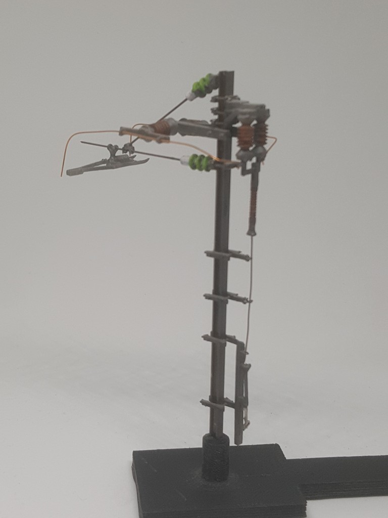 Suport de caténaire pour voie de service, équipé d'un sectionnement (à commande manuelle).Décoré et monté.