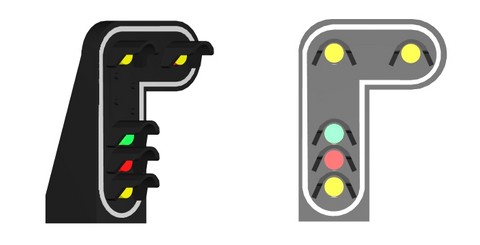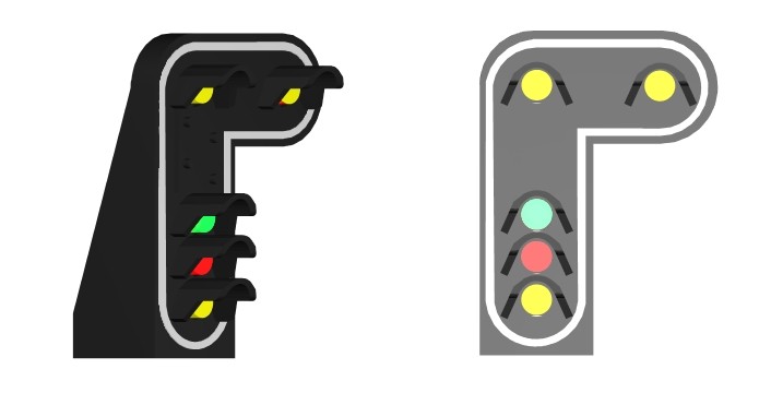 Chassis écran de type F (5 feux) pour signalisation 'B.A.L.+R'. Chassis écran de type F disponible en version 6 feux ou tout autre configuration (sur demande).Cible décorée et équipée de LEDS.